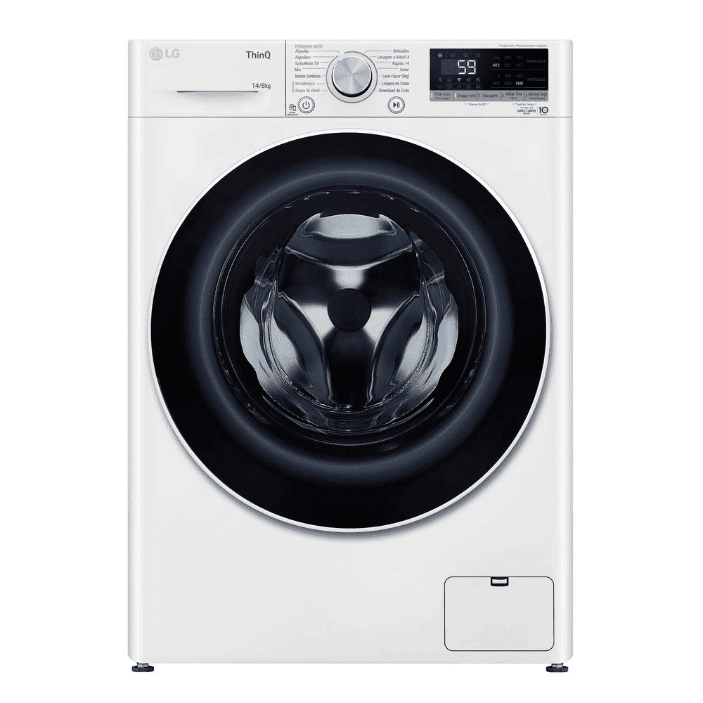 Descrição: Lava e seca com 14 kg de capacidade, com Inteligência Artificial (IA) para ajustar os ciclos com base no peso e no tipo de tecido. Também possui painel moderno, conectividade Wi‑Fi, motor Inverter e funções de economia de água e sabão.